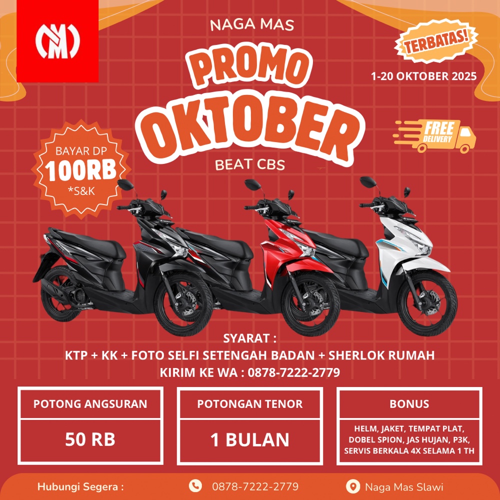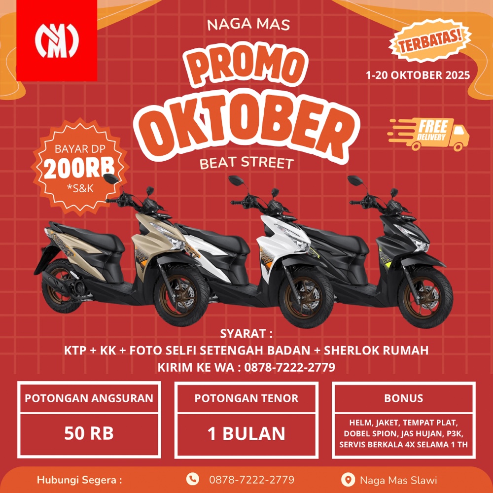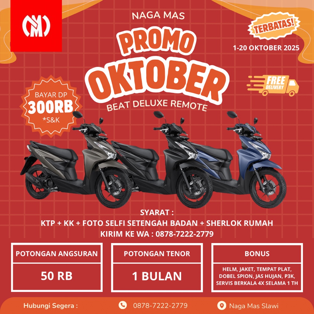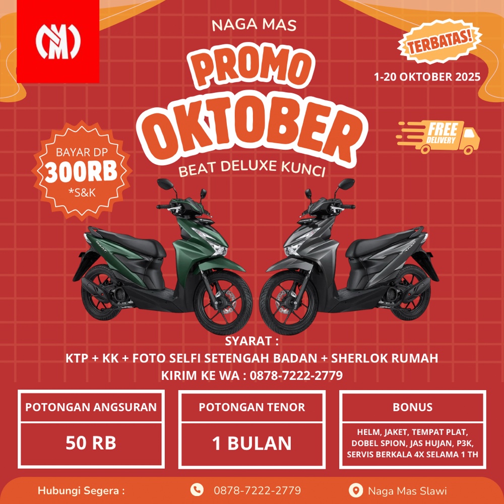 BROSUR PROMO MOTOR HONDA BEAT BULAN OKTOBER 2025 SLAWI TEGAL BREBES BUMIAYU BULAN OKTOBER 2025 AREA SLAWI TEGAL BREBES BUMIAYU